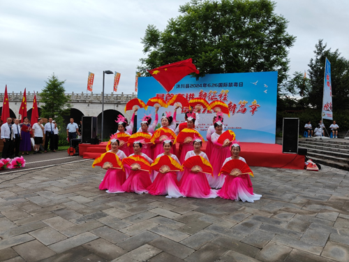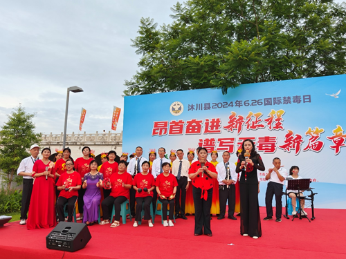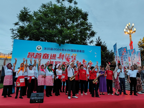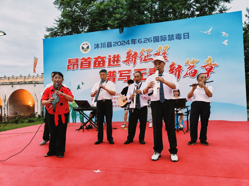6月25日,沐川县禁毒委开展以“昂首奋进新征程·谱写无毒新篇章”为主题的国际禁毒日宣传暨庆七一文艺晚会演出活动,县关工委执行主任李正银与县宇辰管弦乐协会长傅晓兰等近1000名“五老”文艺爱好者和青少年一道观看了文艺节目演出活动。