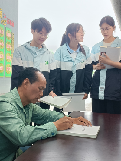 27日上午10时许,县关工委送书读书活动在沐川中学教学楼前举行,沐川中学党委书记张仪组织胡荣辉等120名文学创作爱好者师生参加活动,县关工委执行主任李正银、常务副主任陈清额、副主任兼秘书长吴承旭向大家送书。接着,李正银介绍了他捐赠的《时韵献芳》一书,由四川大学何靖题名,乐山市老体协副主席李泽宗作序,线装书局出版大16开19个印张,以“辞赋祭文、诗词曲联、薅草山歌”为主要内容。并希望同学们认真开展读书活动, “好好学习,天天向上”,传承传统文化,努力成为新时代的栋梁之才。同时,为每位同学签名题词:“学业有成”、“金榜题名”、“平安喜乐”、“锐不可挡”、“所向披靡”、“功成名就”。(李正银)
