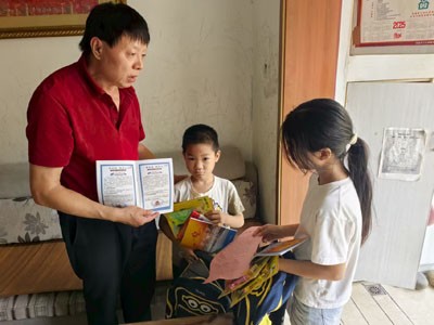 为了进一步增强家长和孩子们的安全意识,“五老”们还贴心地发放了防溺水“致广大中小学生家长的一封信”,并耐心细致地向家长宣传“家庭教育促进法”。并强调,家庭是孩子成长的第一课堂,家长是孩子的第一任老师,良好的家庭教育对孩子的成长起着至关重要的作用。希望家长能够依法履行家庭教育职责,为孩子营造一个健康、和谐、温馨的家庭环境,让孩子在爱的滋养中茁壮成长。随后,“五老”们还为两位小朋友送上了书包、笔记本、体育用品等礼物。当孩子们接过礼物的那一刻,他们的脸上洋溢着幸福的笑容。
