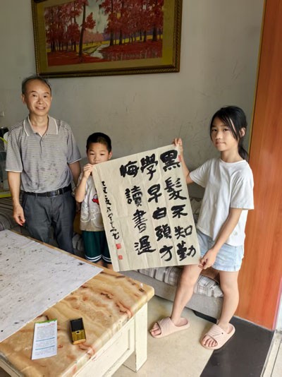 镇关工委副主任符军文更是现场提笔,挥毫泼墨,写下了“黑发不知勤学早 白头方悔读书迟”的勉励话语。那苍劲有力的字迹,仿佛是岁月的沉淀,蕴含着无尽的智慧和期望。它不仅是对小童姐弟的鼓励,更是对他们未来的殷切期许。符主任语重心长地对孩子们说:“孩子们,知识是改变命运的钥匙,只有努力学习,才能实现自己的梦想。希望你们珍惜现在的时光,勤奋读书,将来成为对社会有用的人”。
