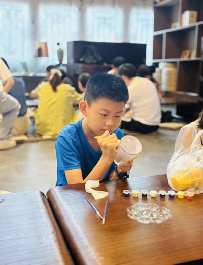 随后,进入手工玻璃绘彩绘环节,小朋友们,发挥自己丰富的想象力和动手能力,亲手为老师制作独一无二的礼物。大家拿着自己制作的作品,相互比较,交流经验,脸上满是喜悦和成就感。小朋友们纷纷交流讨论起来:“我要把制作的玻璃杯送给我最喜欢的语文老师”祝老师节日快乐!”