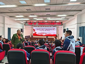 趣味问答环节成了“科学狂欢”:“我国第一颗原子弹爆炸成功是哪年?”“稀土材料能做什么?”学生们举着的手像一片“求知森林”,答对的孩子攥着小奖品,连嘴角都带着“涨知识”的得意。最后,学生代表捧着鲜花奔向张光明,花瓣里裹着的,是对“把青春献给祖国”的最鲜活敬意。