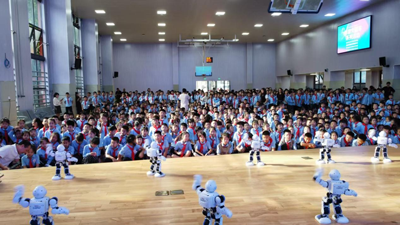 机器人表演与人机互动:活动现场的机器人表演吸引了众多学生的目光,现场欢呼和掌声不断。通过人机对话等环节,学生们零距离感受到了人工智能的魅力和现代科技的力量。