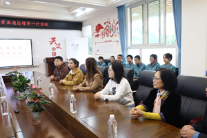 会前,刘莎校长陪同大邑圣索亚酒店聂总及其团队一行参观了学校职高部教室、实训室,并介绍了职高学生及专业开设情况。
