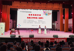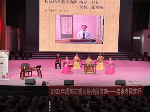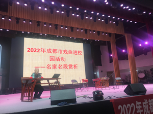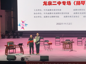 11月2日下午,由中共成都市委宣传部、成都市教育局主办;中共成都市龙泉驿区委宣传部、成都市龙泉驿区教育局协办;成都市京剧研究院、成都市曲艺家协会、成都龙泉二中承办的“2022年成都市戏曲进校园活动——名家名段赏析”龙泉二中专场(扬琴)如期举行。