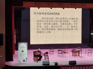 在付老师的分享中,同学们了解到四川扬琴是国家级非物质文化遗产保护项目,是四川曲艺中“以唱为主”的代表曲种,乾隆年间即已形成。由演员扮演角色却不按角色化妆,分别手执各种乐器坐唱故事。故有“坐地传情”、“清唱剧”之称。
