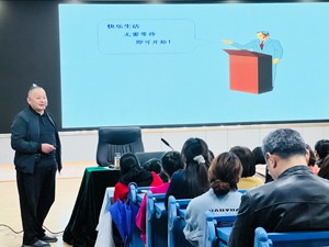 王教授给老师们做了《理性评价,快乐生活》的讲座。他从三个聪明人的故事引出话题,通过生动的事例,告诉老师们,活好每一天,就是活好一辈子。作为教师的我们,面临着家长期待、家长问责、家长问政的几大压力,我们需要理性评价压力,我们生活中的很多不快乐,都是非理性观念。快乐生活,来自评价,无论我们处于哪个阶层,只要心态好,就能快乐生活。快乐生活,需要我们活出生命质量,把握生命宽度,拥有生命长度。在两个小时的培训中,王教授深入浅出的讲解,幽默风趣的语言,生动具体的实例,在老师们心中激起共鸣,会场不时响起阵阵掌声和欢笑声。