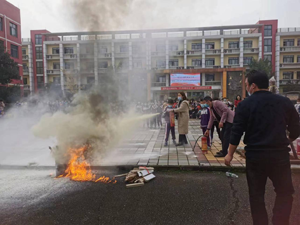 上午10点,校园广播突然传来火警警报。各班教师立即指挥学生捂住口鼻、弯腰,按预定的疏散路线迅速撤离到铭恩楼前,各班长立即清点人数。整个过程井然有序,撤离用时不到2分钟。随后,保卫科科长郭正权对学生们进行消防知识专题培训,讲解灭火器使用注意事项,并指导教师、学生进行消防灭火实操训练。