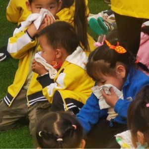 当天15时30分,警报骤响,老师们各就各位,按照预案的疏散线路,沉着冷静地指挥孩子们捂住口鼻,弯腰小步快走,有序撤离,迅速下楼,疏散到操场。