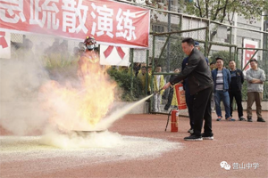 开在第31个“119”全国消防日来临之际,为了建立有效的防范和处理火灾事故的工作机制,向师生普及消防知识,增强师生消防意识,提高师生应急反应、自救互助能力,确保广大师生在险情面前能够选择正确的自救、疏散、逃生办法和路线。2022年11月10日上午?,四川省营山中学校开展了消防应急疏散演练暨灭火演练活动。