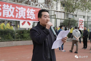 演练结束后,营山中学工会主席李云中对此次应急疏散和灭火演练活动进行了总结。李主席肯定了全校师生在演练活动中的出色表现,演练活动锻炼了全校师生在紧急情况下的应变能力,还让学生学到了许多安全自救知识,同时对全体师生提出了更高要求:将这些消防安全知识运用到现实生活中去。