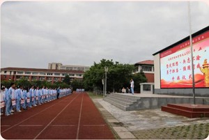 升旗,敬礼,奏国歌。在全体师生的注目下,五星红旗冉冉升起,心中一团团热火开始燃烧,为我们伟大祖国的日益繁荣昌盛而自豪。鲜红的国旗如同火焰一般点燃了同学们作为新时代的学生内心的无比热情,成为上空的一抹绚丽的色彩。