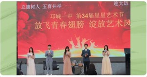 为迎接党的“二十大”胜利召开,充分激发青年学子的爱国热情,同时做好“迎大运,爱成都”的青少年相关活动,贯彻落实“立德树人,五育并举”的精神,全面贯彻教育方针,促进学生德智体美全面发展,展现中学生朝气蓬勃的青春风貌,同时展示我校艺术教育改革和发展的成果,2022年4月28日上午8:10分,沐浴着初夏的阳光,洋溢着青春的笑容,邛崃一中第34届的星星艺术节落下了帷幕。