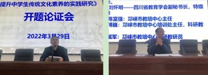 阳春三月,草长莺飞,在这个万物复苏的季节,为响应打造西部教育高地的号召,在邛崃市教育局、邛崃市教培中心的关心指导下,我校终于在2022年3月29日迎来了因疫情推迟了一个多月的成都市教育科研规划课题《以田野调查提升中学生传统文化素养的实践研究》开题论证会。