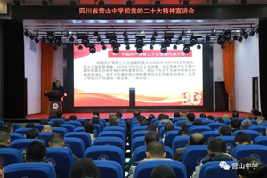11月14日晚,营山中学党委召开“党的二十大精神宣讲会”,学校党委副书记史小华同志为全校教师作了专题宣讲。