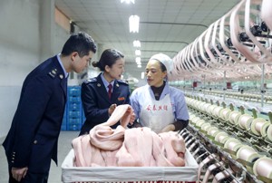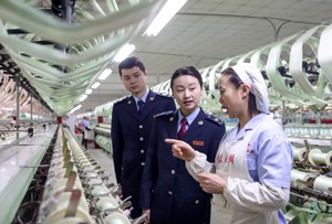 图为疫情防控“新十条”出台后,四川省广安市武胜县税务局的联企人员,及时到安泰茧丝绸集团有限公司的生产现场,鼓励企业战胜困难,充满信心冲刺年度目标任务。(邱海鹰)