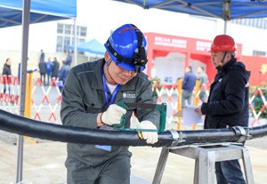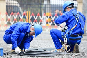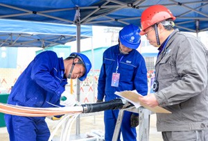 2023年2月22日,参加“2023年川渝电力职工职业技能大赛”的选手,在四川省广安市华蓥山经开区参加冷缩电缆终端制作项目比赛。