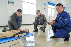 2023年2月22日,参加“2023年川渝电力职工职业技能大赛”的选手,在四川省广安市华蓥山经开区参加触电急救项目比赛。