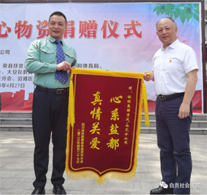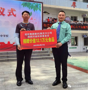 旺旺集团旺江山双赢事业部南充分区域部长雷评代表捐赠方致辞。他指出:旺旺集团共有53家分公司和34家工厂,是一家社会责任感强的爱心企业,自1997年成立中国旺基金会以来,在全国范围内积极从事公益活动和两岸交流合作,在企业自身发展过程中始终保持创造价值回报社会的初心,仅旺旺集团重庆/南充分公司去年就捐赠零售价值近150万元的产品,体现集团“人道、博爱、大团结”精神。期望未来能和自贡市扶贫“两会”加强联系,不断推动社会福利事业向前发展。