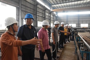 在“东气”公司,杨明通还引着调研人员走进“智能电焊”车间,参观了4台自动化的锅炉管焊接现场。“这台共计16把焊枪的智能焊接机,共分4个焊接位,每个焊接位对‘路过’的焊接件同时焊接,只需要两个人操作。这种智能焊机的优点就是节省了人工、保证了焊接质量、提高了工作效率,4台智能焊接机每年能在过去的基础上节约人工成本240万元以上。”杨明通介绍。