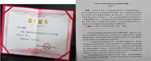 1. 邬贵成同志:荣获"成都市双流区老科协2021-2023年度”特殊贡献奖,特颁此证,以资鼓励。成都市双流区老科学技术工作者协会。另外,邬贵成的论文《初级中学科创特色教育探索》被载入《成都市双流区老科学技术工作者协会2022年—2023年科技论文、调研报告、建言献策、工作研究》文辑一书。