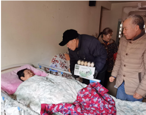 吴家元主任与探访会员亲切交谈,详细询问了他们的生活情况和和身体状况,嘱咐高龄会员要搞好生活,多多保重身体,祝他健康长寿,节日快乐;叮嘱生病会员要树立信心,乐观向上,祝愿他(她)早日战胜疾病,过一个快乐新年。