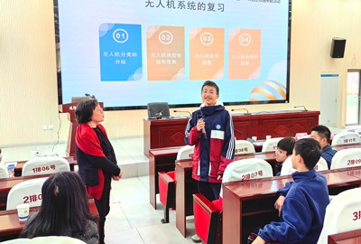 江红雨老师长期从事飞机成品设计、航空技术和系统工程管理等工作,她希望把有关无人机的知识向青少年进行宣传和普及,激发学生们从小爱科学、懂科学,用科学。她讲授的内容包括无人机的分级与分类标准、典型性能与优势、无应用场景、未来发展趋势和安全法规等。从1903年莱特兄弟第一架有动力、可持续的飞机成功试飞,到今天的无人机广泛应用于航拍技术、农药喷洒、军事侦察等领域,以及太阳能无人机成功试飞,同学们听得津津有味。江老师说,科技发展日新月异,未来,无人机还将应用于城市物流、交通等领域,比如无人机送外卖,无人机载人等。江老师现场与学生互动,开展提问、现场无人机飞行操作展示等,为课堂增加了趣味性和生动性。看到自己的同学操作微型无人机起飞了,如小蜜蜂一般发出嗡嗡之声,学生们一个个跃跃欲试,兴奋极了。科普的课堂生动而有趣,学生们在这轻松愉快的活动中受到科学熏陶。