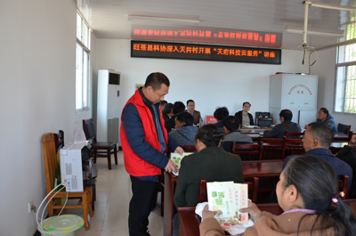 在培训会上,县科协驻村队员贾正义现场给参加培训的老百姓发放了种养植新技术手册和天府科技云服务科普宣传文化布口袋。 (何适/文 张禹/审)