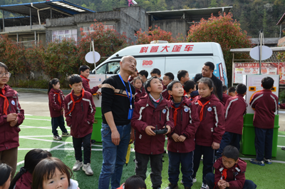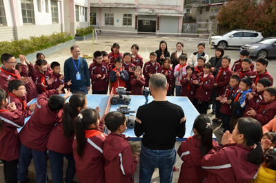 旺苍县科协科普宣传员蒋勇现场通过机器人表演(广播体操表演,单口相声表演,拔萝卜等等儿童熟悉的舞蹈),向广大师生展示了人工智能的科技魅力,在场观看的师生发出欢快笑声。同时科普员蒋勇手把手教学生轮流体验无人机操作,让山区学生零距离感受无人机的操作技能,极大地提高了学生热爱科学的兴趣。