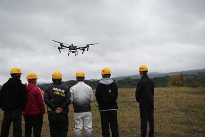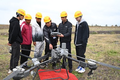 4月7日,天空飘着小雨,荣州大地一片湿漉,向44.5万吨粮食生产总量目标挺进的春耕也一片繁忙。为了夺取粮食丰收,无人飞机也悄悄“飞”进荣县农业“空域”。这天,植保无人飞机培训就在旭阳镇“大草原”举行,主办方是荣县振兴家庭农场联盟、自贡剑华农业科技有限公司。
