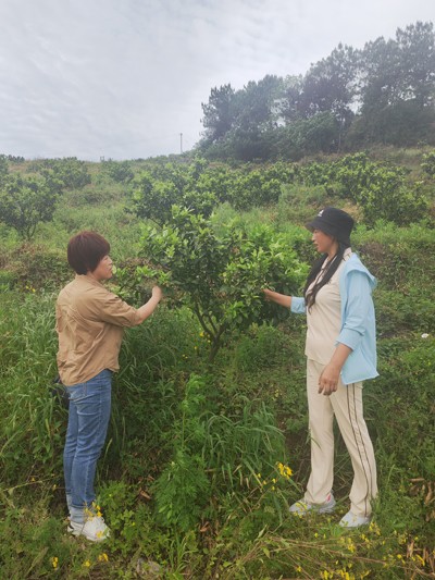 随后,雍宇玲与刘柏秀一道走进基地,详细察看了李子树、柑橘树的生长及病虫害情况,就预防李子树的灰霉病和红蜘蛛、警惕柑橘的大实蝇等病虫害方面,如何观察、如何选药灭杀进行了技术指导。“现在正是李子梳果、柑橘修枝梳花的好时机。”雍宇玲就加强种植基地的管理进行了提醒。