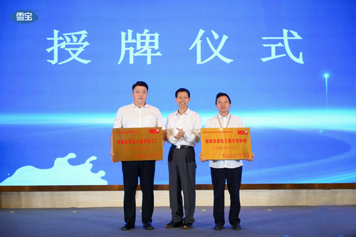 随后,王加启为四川雪宝乳业集团、绵阳鸿丰牧场分别颁发“国家优质乳工程示范工厂”“国家优质乳工程示范牧场”,并启动“雪宝巴氏奶节”开幕仪式。