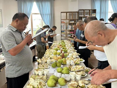 活动严格按照预定方案进行。上午10时,在成都市老科协三农工委主任余建明主持下,熙玉村党支部书记包显江首先介绍了当地梨产业发展情况。随后,由各区县推选的8名老专家和10名群众代表组成评审团,对参评的7个梨品种进行专业品鉴。