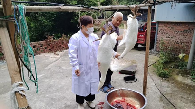 9月11日,宜宾市老科协会员、原宜宾职业技术学院教授曾饶琼率队深入宜宾市南溪区汪家镇马耳岩四川省种鹅基地,开展四川白鹅饲料营养指标剖解取样测定工作,助力南溪区四川白鹅产业发展,科技赋能乡村振兴。