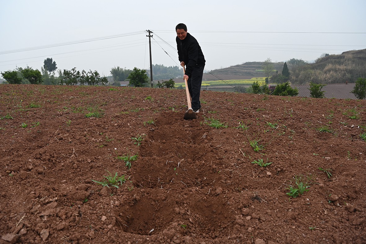 “2025年,光水稻(含再生稻)就收获了2.8万斤左右,旱地搞的玉米套种大豆、油菜、辣椒等,效益也挺不错。”回忆起去年的收成,杨君火脸上洋溢着自豪的笑容。展望2026年,他更是信心满满:“今年,我打算在去年的基础上,继续搞水稻+龙虾、玉米+大豆这些套种模式,争取再迎大丰收!”说话间,他正挥舞着工具在旱地里打窝,为即将到来的玉米播种做准备。按照计划,3月6日水稻种子已顺利播下,3月7日就将开始玉米种子的直播工作。