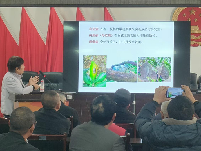 “春剪不能心软,要舍得去掉病弱枝,保证通风透光”“当前是病虫害预防的关键期,清园工作一定要做细”……针对当前柑橘修枝整形、水肥管理及春季病虫害绿色防控等实际问题,老专家们现场“把脉问诊”,用通俗易懂的语言拆解技术要点,显示屏上展示出关键示范操作要领 。