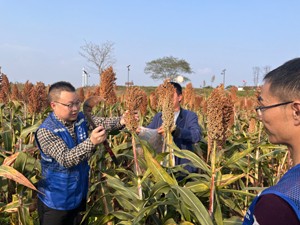 11月28日、11月30日,国家统计局富顺调查队队长周昌带队到代寺镇李子村、白羊村,龙万乡华利村开展杂交高粱和常规高粱蓄留的再生高粱实割实测工作。据实测结果表明,杂交品种再生高粱348公斤/亩、常规品种再生高粱205公斤/亩,在特殊气候条件下实现了全县再生高粱大面积丰收。