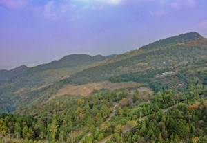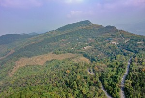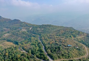 2022年12月12日,四川省广安华蓥市天池镇利用鹅凤岭经整治刚栽植油樟苗的石漠化土地,显得格外醒目。