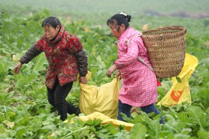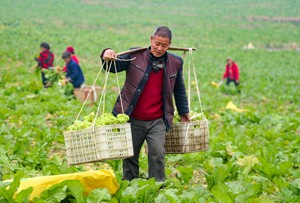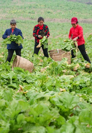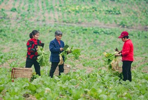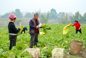 四川省华蓥市利用渠江岸边永兴镇大佛山、马架坪村等地改良后的撂荒地、瘠薄地兴建粮经复合种植产业园, 采取粮油复种、蔬菜轮种方式,确保土地全年、全时段利用。目前,园区种植的2000余亩订单式销往重庆等地的榨菜喜获丰收,当地农民奔忙田间,在开心中收获新年“第一桶金”。