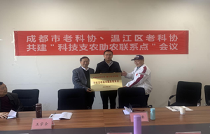 市老科协秘书处宣读了成都市老科协关于共建《科技支农助农服务联系点》的决定。成都市老科协副会长兼秘书长王宗全、温江区老科协副会长曹炬火共同向温江区永宁街道八角社区授牌。