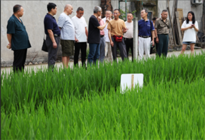 调研组一行还到位于青城山镇官田社区的水稻试验田进行了察看。