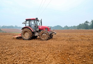 2023年11月8日,四川省华蓥市高兴镇的农民在高坪片区粮油产业园,使用旋耕机耕整播种油菜、小麦等小春农作物的农田。(邱海鹰)