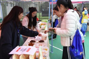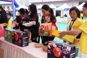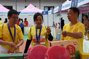 “来品尝一下,这是‘阿密达’新品种柑橘,不要包装盒10块钱一斤。”“这是土鸡蛋,68元一件,生态的鸡蛋哟!”“这里有糍粑辣椒酱、红海椒辣椒酱、还有冷吃兔,可以品尝品尝再买!”展销现场,马拉松选手和市民一边看一边品尝,适合自己的就当场下单购买,现场交易火爆。
