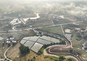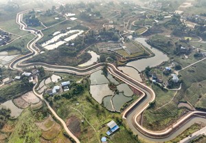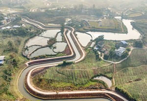 图为2023年12月6日,鸟瞰即将竣工的四川省华蓥市禄市镇胡家河堤防(整治河道)工程。(邱海鹰 刘南贤/文图)