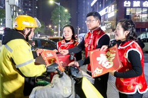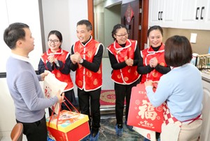 新春佳节即将来临,四川省广安市社会保险局的志愿者带着春联、“福”字饰品及装有社保宣传资料的大礼包,分别走向街头巷尾和居民家中,向市民送去新年的祝福。