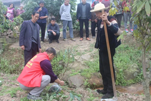 随后,阮吕生就近选择了一块土地,从修剪枝条、挖坑、浇水、栽种等几个步骤给到场的老乡们演示如何科学栽种龙眼树苗,讲解如何进行管理,并再三强调一定要按照技术要领。