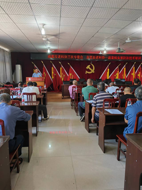 为助力乡村全面振兴,夺取今年“粮、经”双丰收。6月21日成都市老科协三农专委会、金堂县老科协在官仓街道办中孚社区会议室共同举办“蔬菜病虫害防治技术”、“水稻病虫害防治技术”培训班。来自官仓街道办10余个村、社区的蔬菜种植大户以及种粮大户40余人参加了培训。