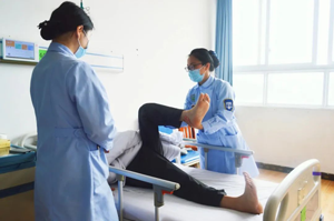 5月11日上午,只见王静正在病房为患者做康复运动,一边帮患者做拉伸,一边提醒患者和陪护的家属要注意哪些事项。患者和家属一边答应,一边连连称谢。