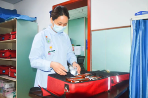 5月11日,刚走进急诊科,就看到该院大内科兼急诊科护士长杨苘榕正在检查救护车上的医疗包。工作中,她总是一马当先……