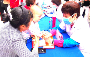 义诊现场十分活跃,内科、中医、儿童保健、测血压依序进行,老专家们也忙得不亦乐乎。
